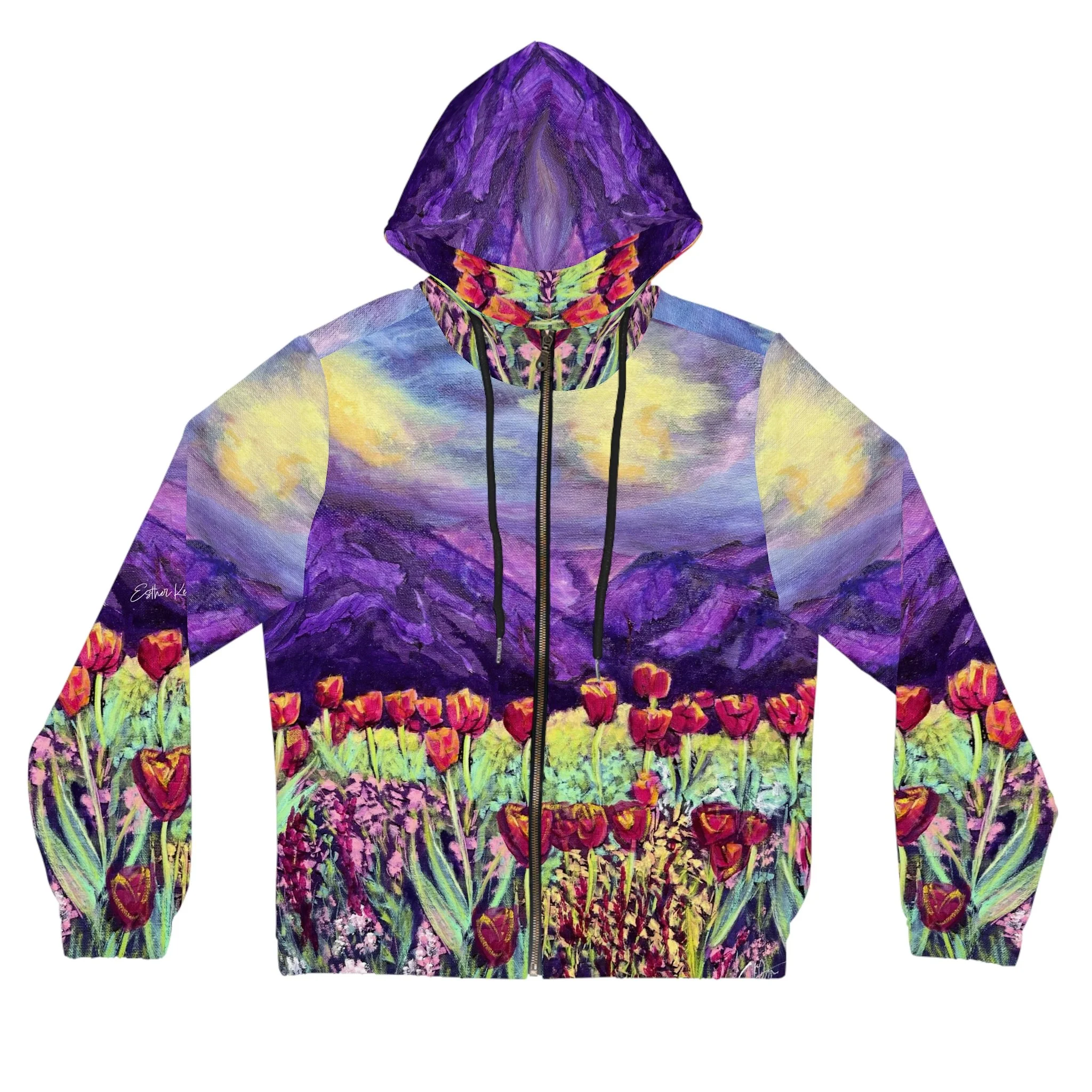 This comfy hoodie has a soft outside with a vibrant print and an even softer brushed fleece inside.